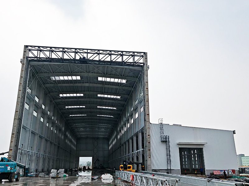 Recently, the steel structure work for the CSIC Jinma Rizhao Green Energy Equipment Manufacturing Project, undertaken by Jinma Industrial Group Rizhao Steel Structure Co., Ltd., entered its final stages. As a major project in Shandong Province, the project primarily involves the construction of core facilities, including onshore and deep-sea wind turbine main engine assembly bases and a nacelle cover composite material manufacturing base. Upon completion, the project will produce over 200 wind turbine units annually, primarily for export to the European and American markets.